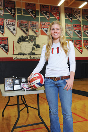 Strength of character and independence are not just born out of overcoming adversity but from years of supportive encouragement, a notion that Coronado High School senior Jaime Lemcke represents with superb poise and grace. Devoted friendships play a key role in this volleyball superstar’s world, whether it’s depending on fellow students or admiration from teammates. While high school may be a priority, it’s the connections of family that have formed the strongest bonds and helped instill a sense of will power, leadership and integrity that others hope to emulate. It’s these admirable qualities and more that place Jaime Lemcke – A Step Above.